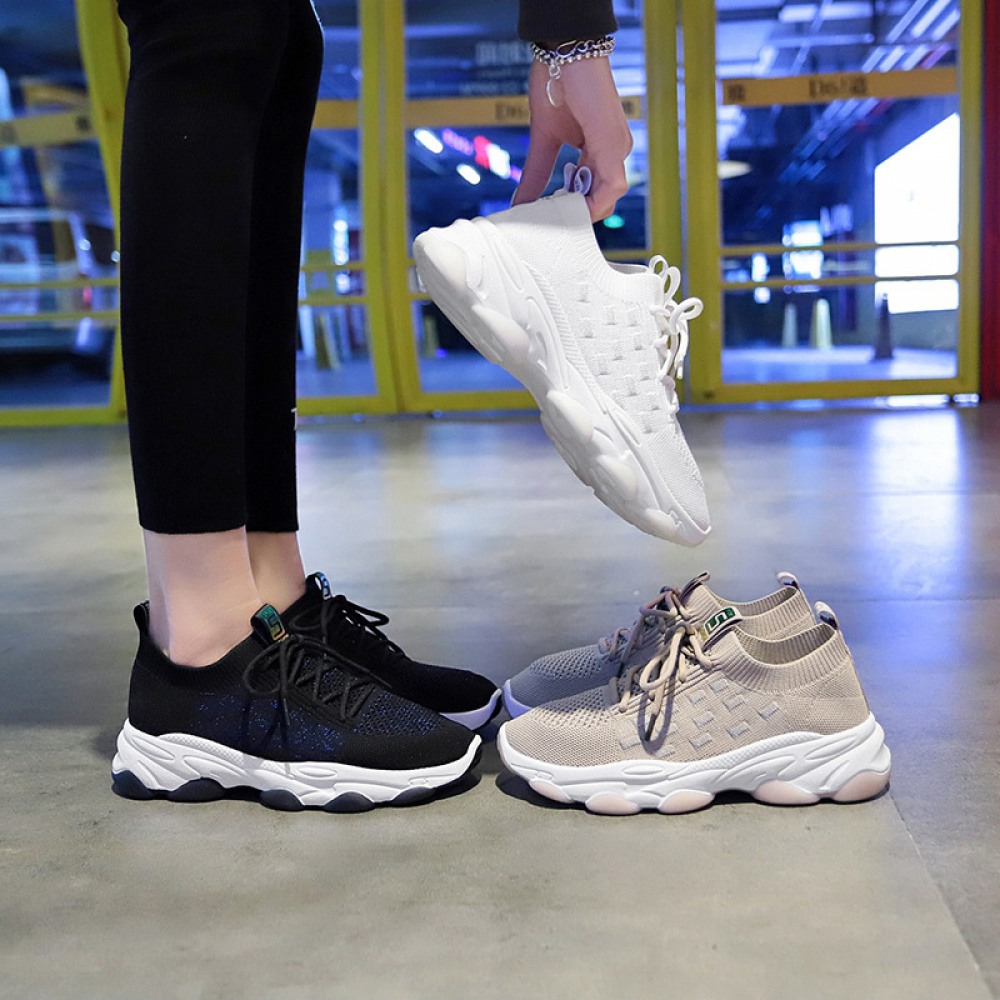 Breathable Flying Woven Women's Shoes New Sports Running Shoes Female Students Board Shoes