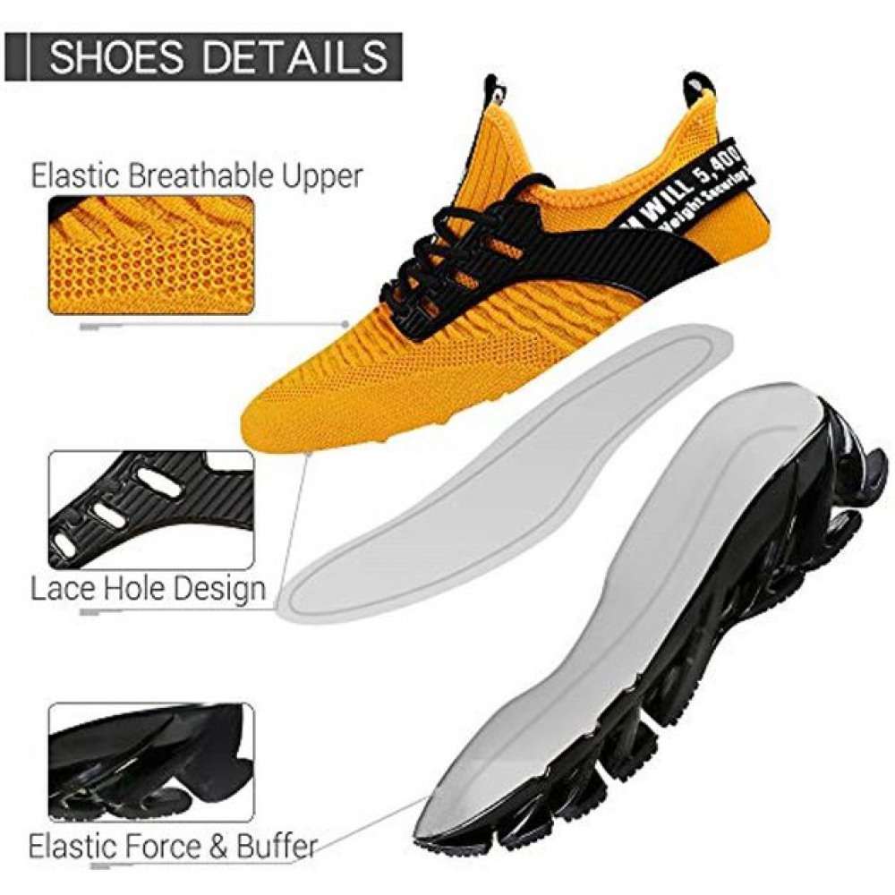 Mens Athletic Running Shoes Mesh Lightweight Sneakers Breathable Casual Tennis Sport Shoes for Workout Walking Yellow