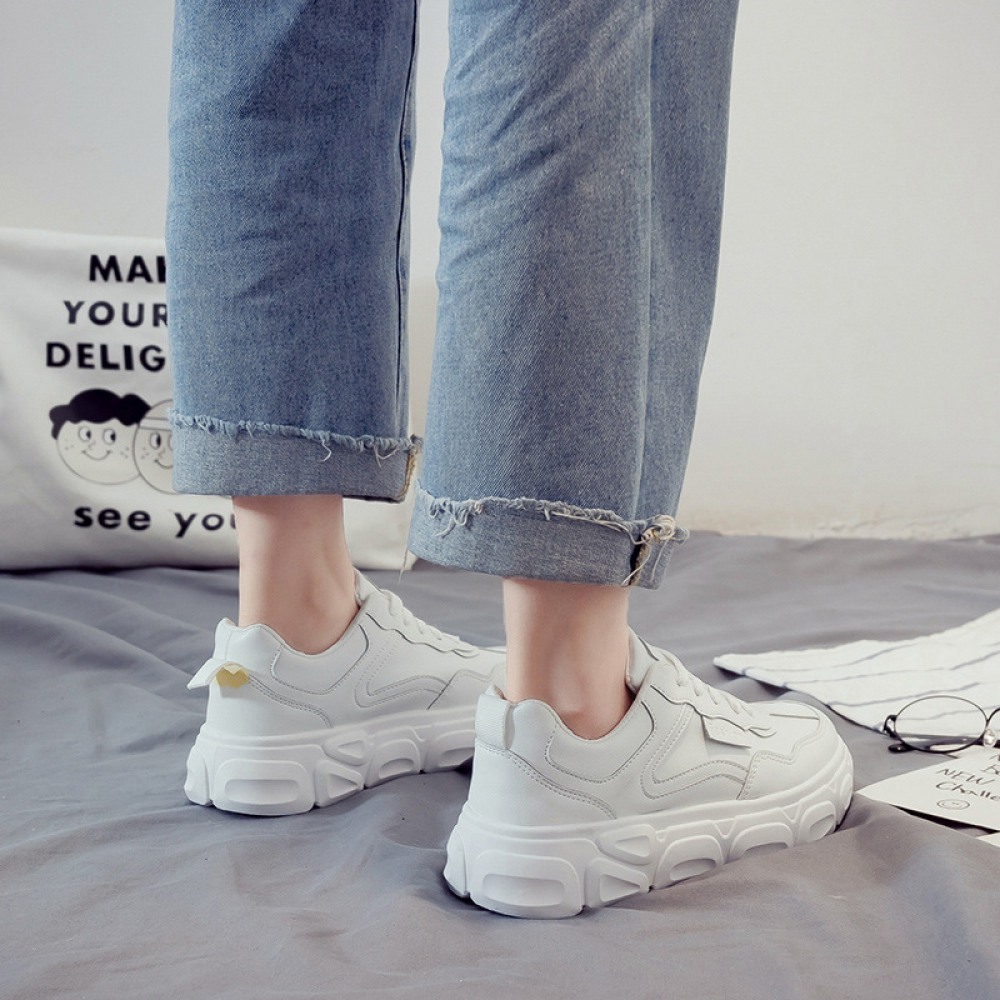 White Shoes Female Spring New Student Running Board Shoes Female Increased Sports Casual Shoes Laces