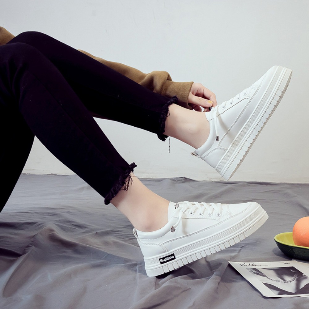 Basic White Shoes Women Spring New Student Flat Running Shoes Women's Lace-Up Platform Shoes