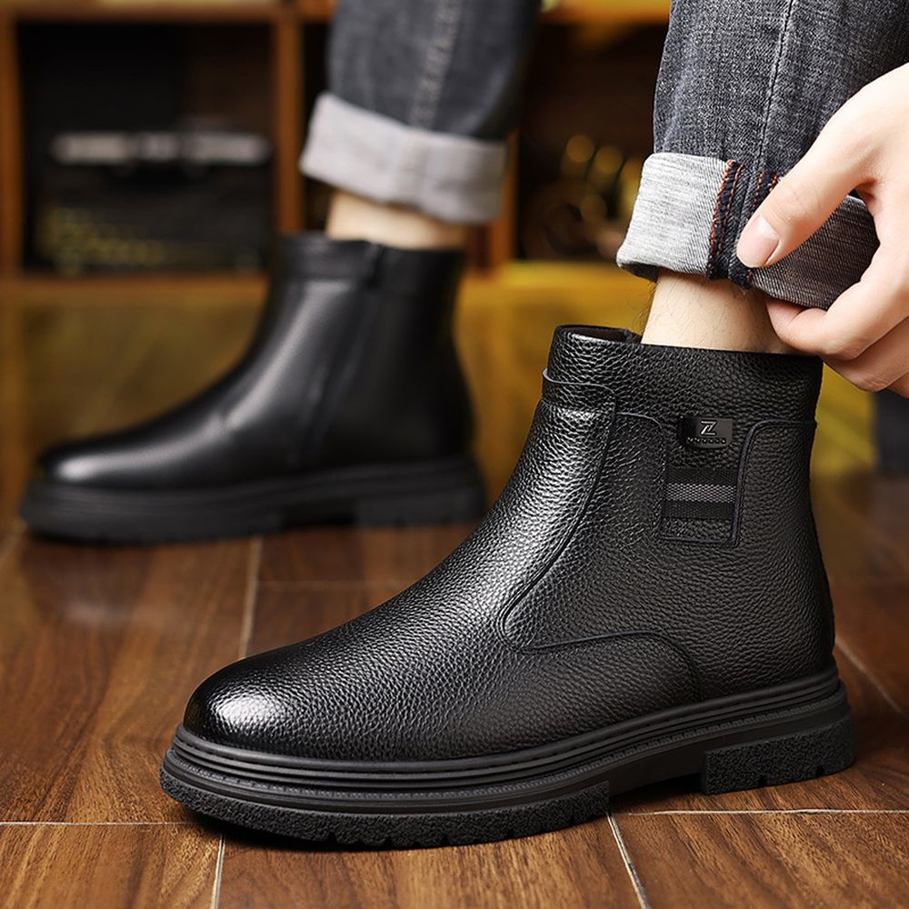 Winter Men's Cotton Shoes Casual Leather Shoes Velvet Warm Business Leather Boots