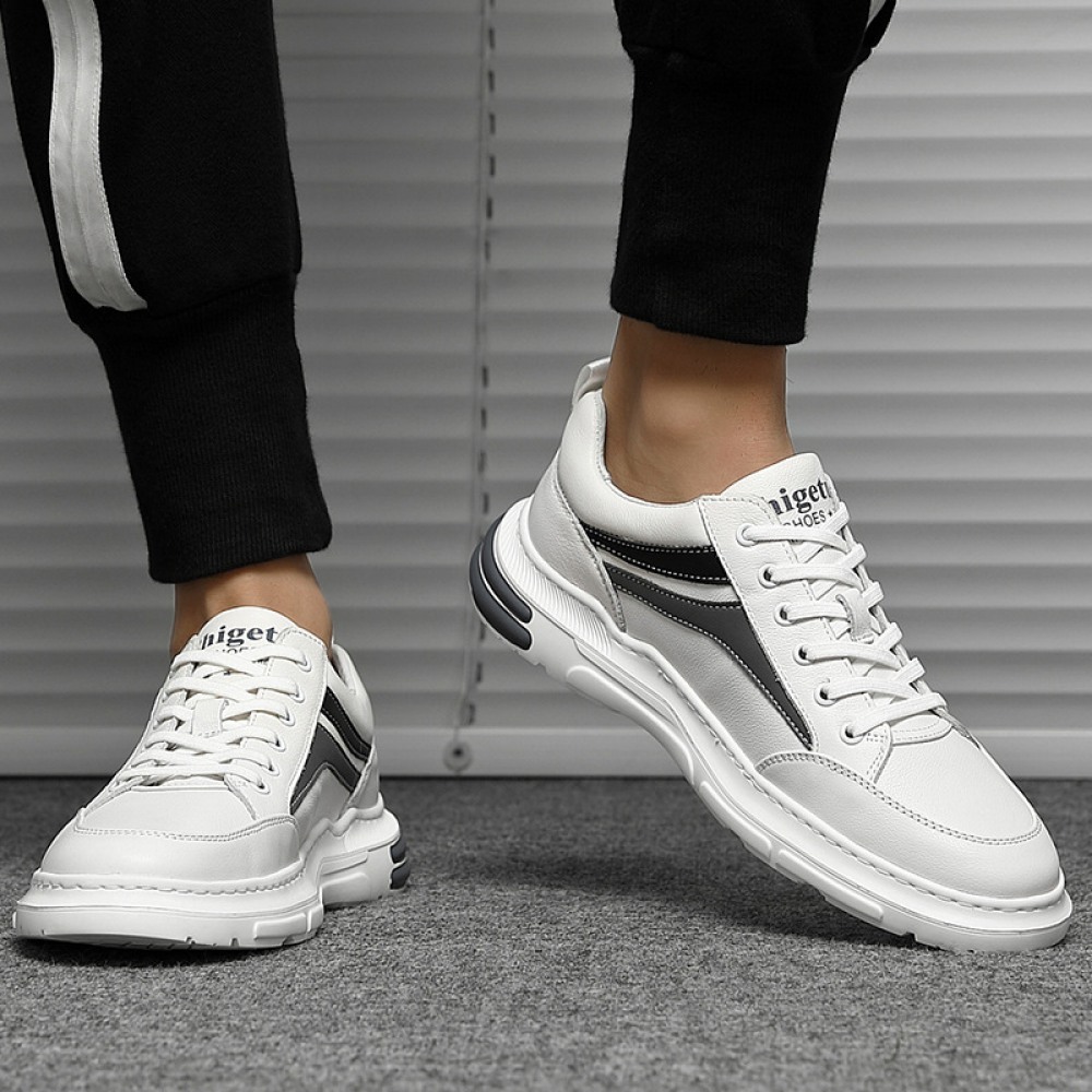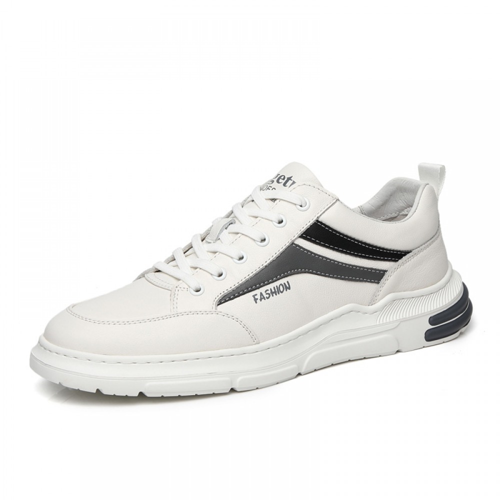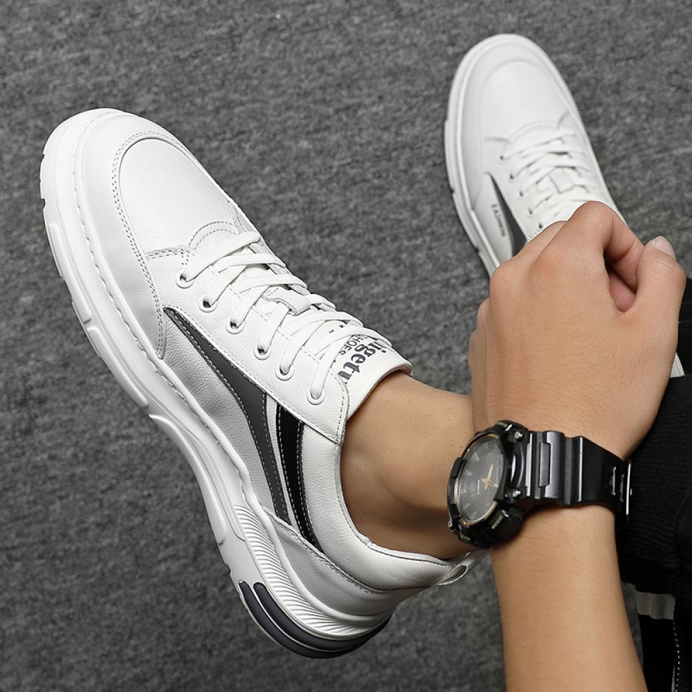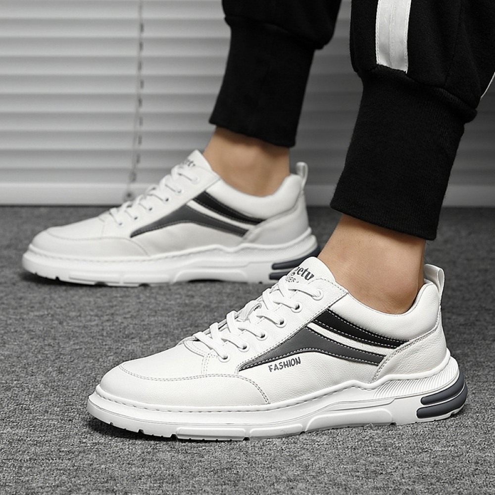 Men's Leather Sports Casual Shoes White Board Shoes Mens Light-Soled Soft Surface Fashion Shoe
