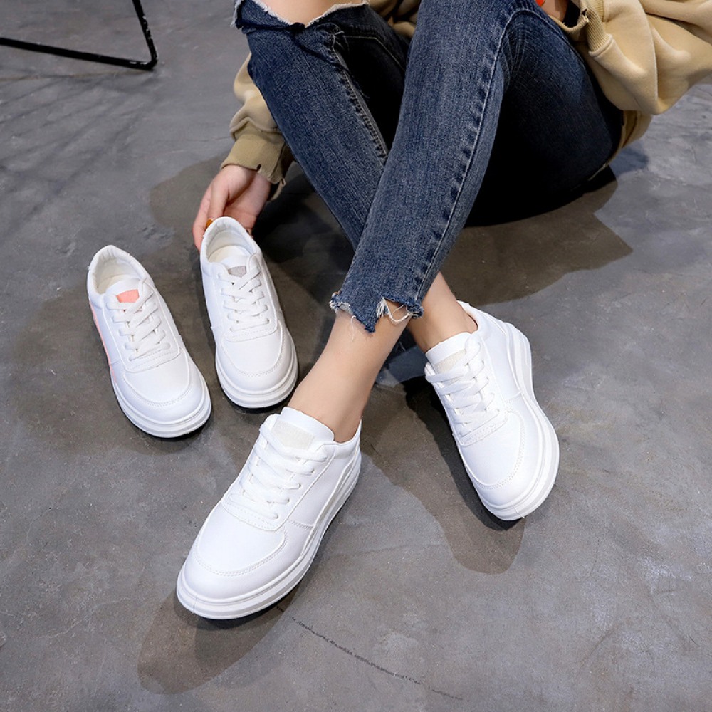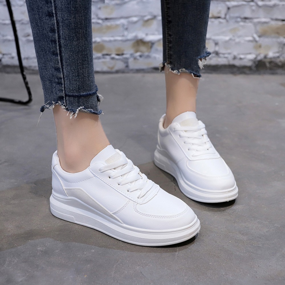 Spring And Summer New White Shoes Women Breathable Leather Thick-Soled Casual Shoes Sports Running Shoes Women