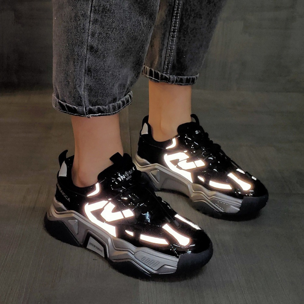 Women's New Thick-Soled Increased Luminous Mesh Sports Casual Shoes Women's Plus Velvet Keep Warm