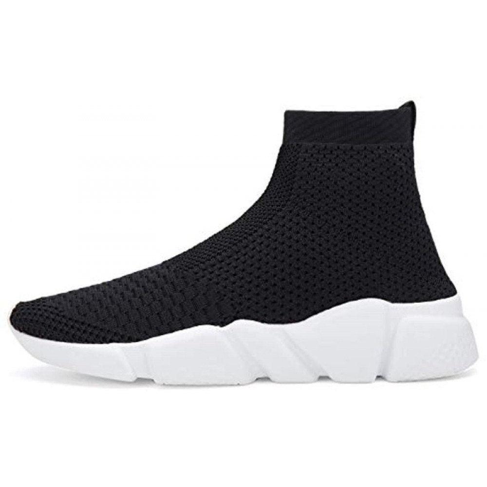 Womens Walking Shoes Mens Slip-On Sneakers Breathable Lightweight Athletic Running Shoes High Top Black